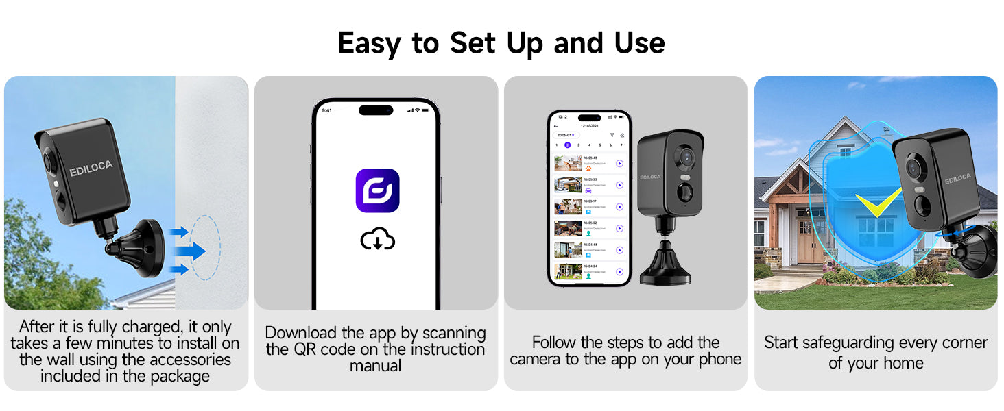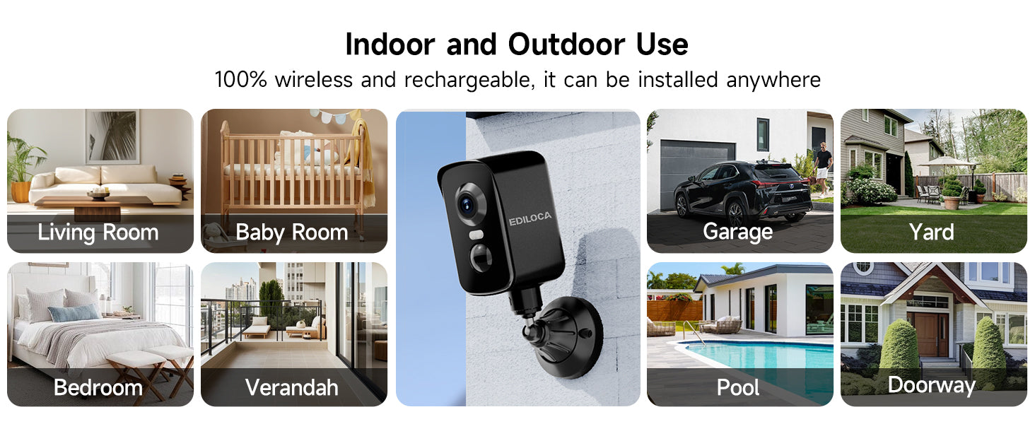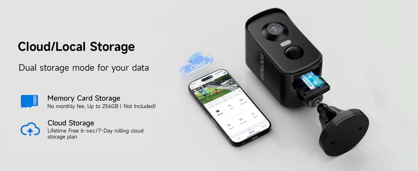 When motion is detected, this indoor outdoor security camera automatically records 6 seconds of video and saves it in the cloud for 7 days. On the 8th day, the first day's video will be overwritten. This service is lifetime free.