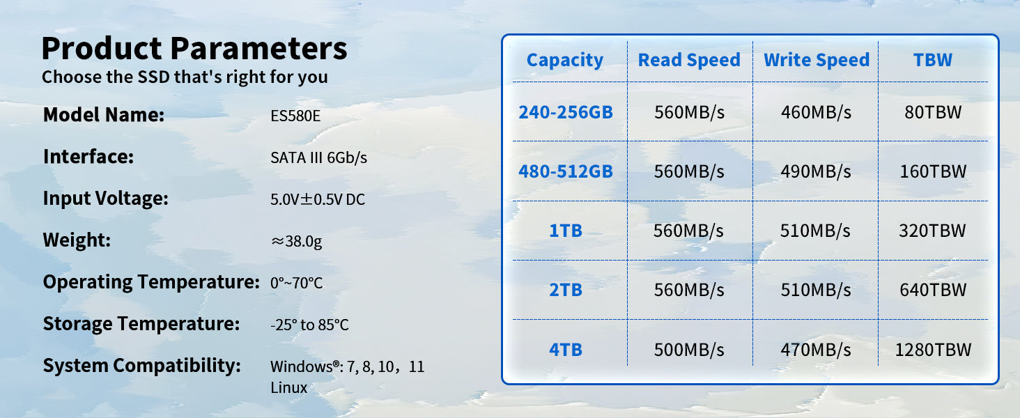 Read: Up to 550MB/s, Write: Up to 500MB/s