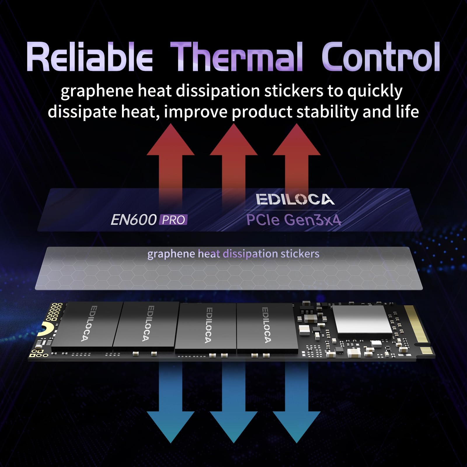 EDILOCA EN600 PRO M.2 PCIe SSD features a high-speed PCIe Gen3 x4 interface, NVMe SSD 1.3 protocol compliance, 3D NAND Flash, and configure dynamic SLC cache for cost-effective and superior performance.